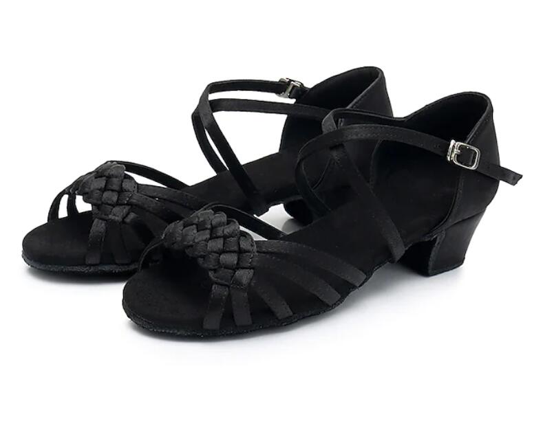Black Ballroom Dance Shoes Latin Salsa Dancing Shoes Low Cuban Heels