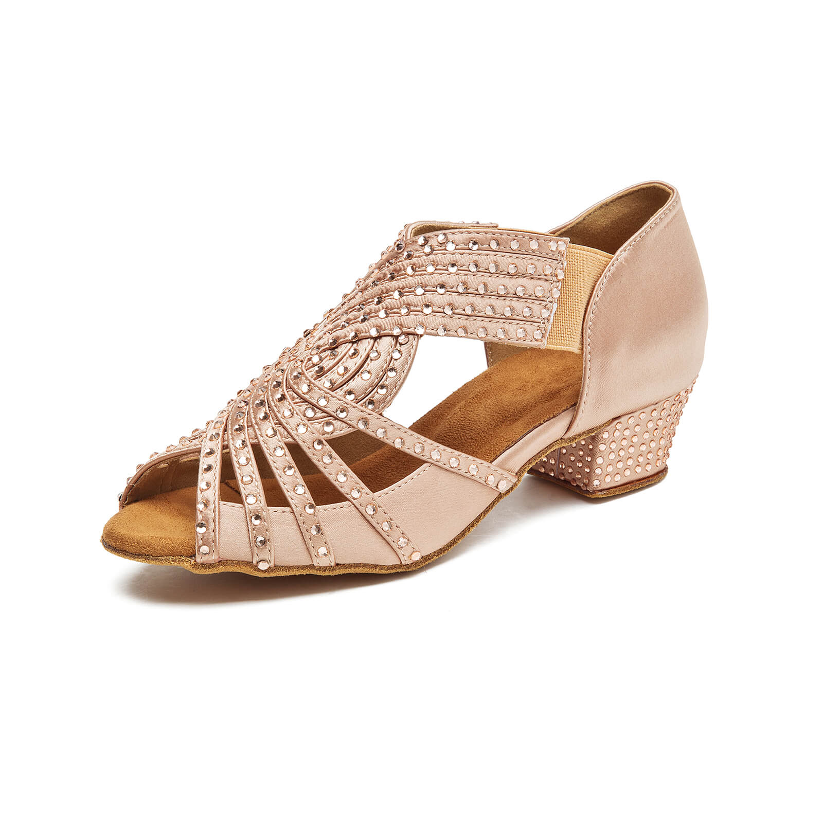 Nude 1.5inch Low Heel Latin Salsa Swing Dance Shoes Rhinestone