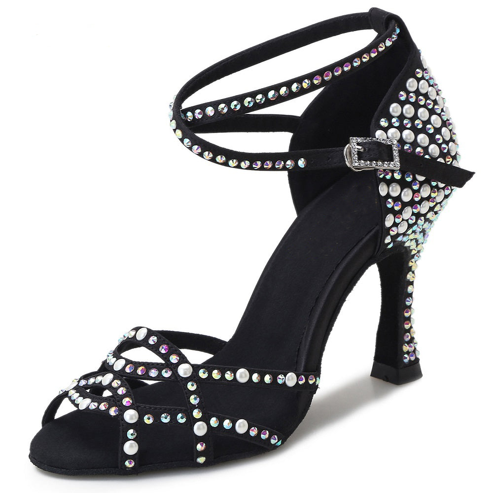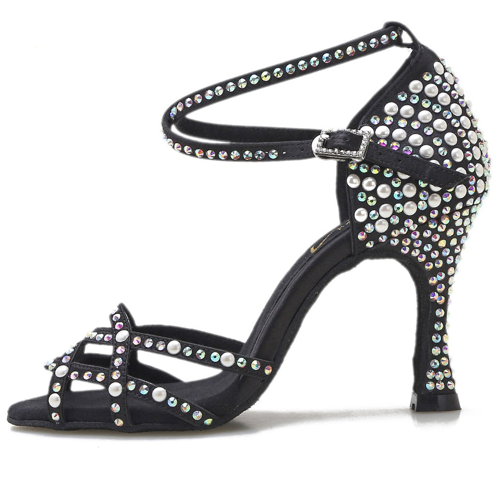Rhinestone Dance Shoes Black Salsa Dance Shoes