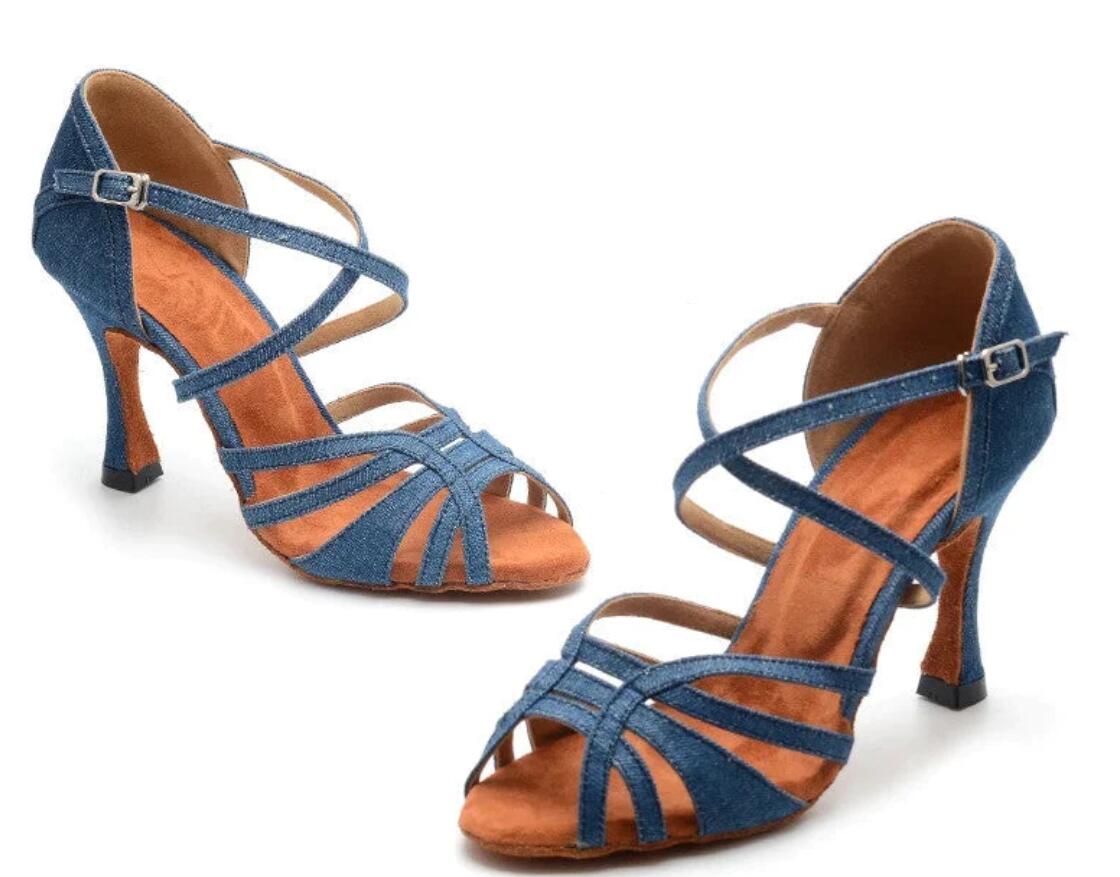 Salsa Dance Shoes Latin Open Toe Denim Shoes