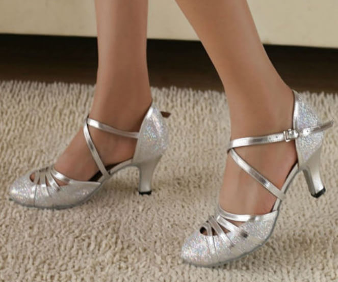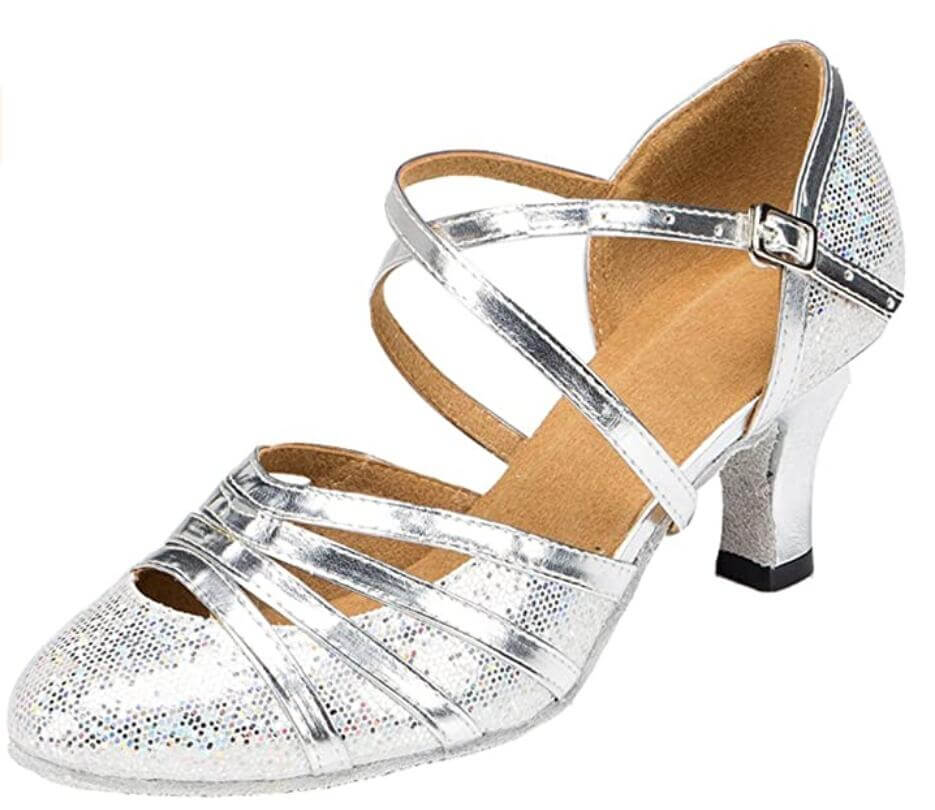 Silver Glitter Ballroom Closed Toe Dance Shoes