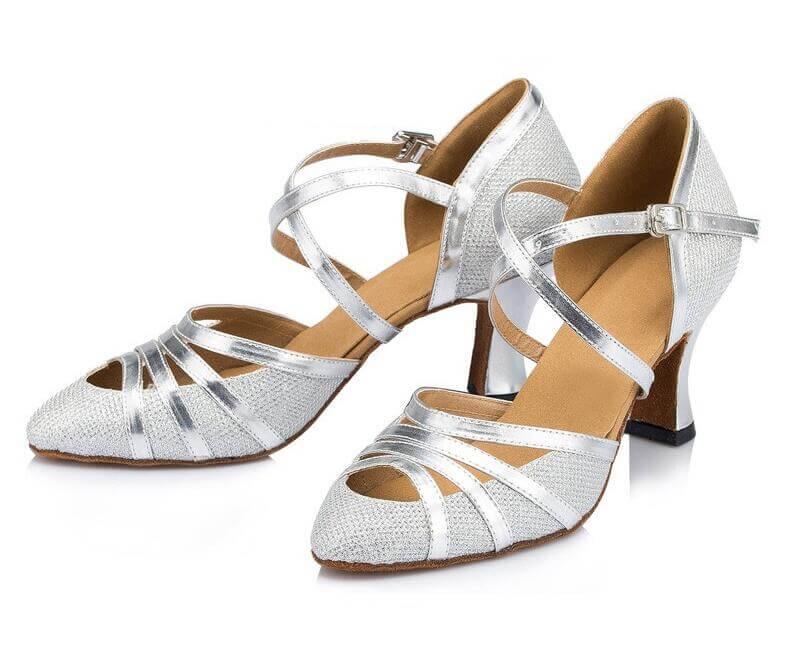 Silver Glitter Closed Toe Ballroom Dance Shoes Latin Salsa Dance Shoes