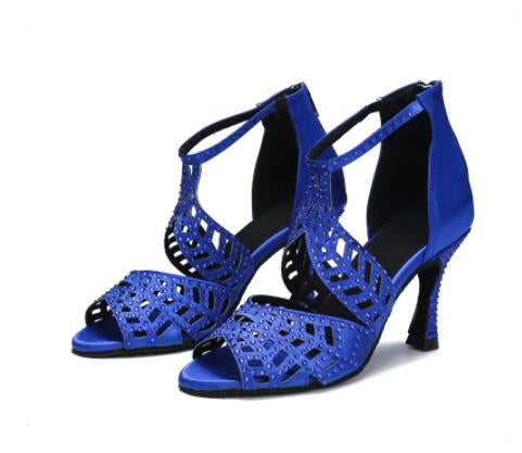 Sparkly Dance Shoes Blue Rhinestone for Salsa Latin Bachata Dance