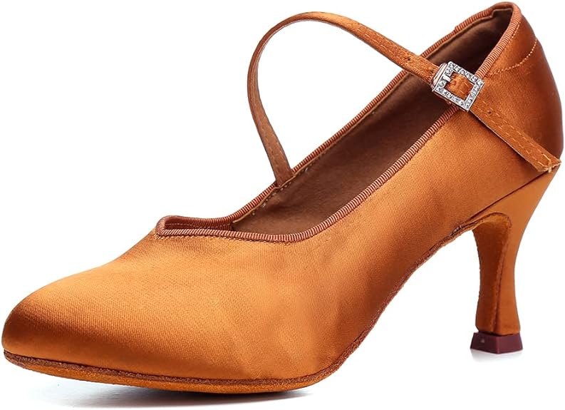 Tan Ballroom Dance Practice Shoes Smooth Waltz Closed Toe Dancing Shoes