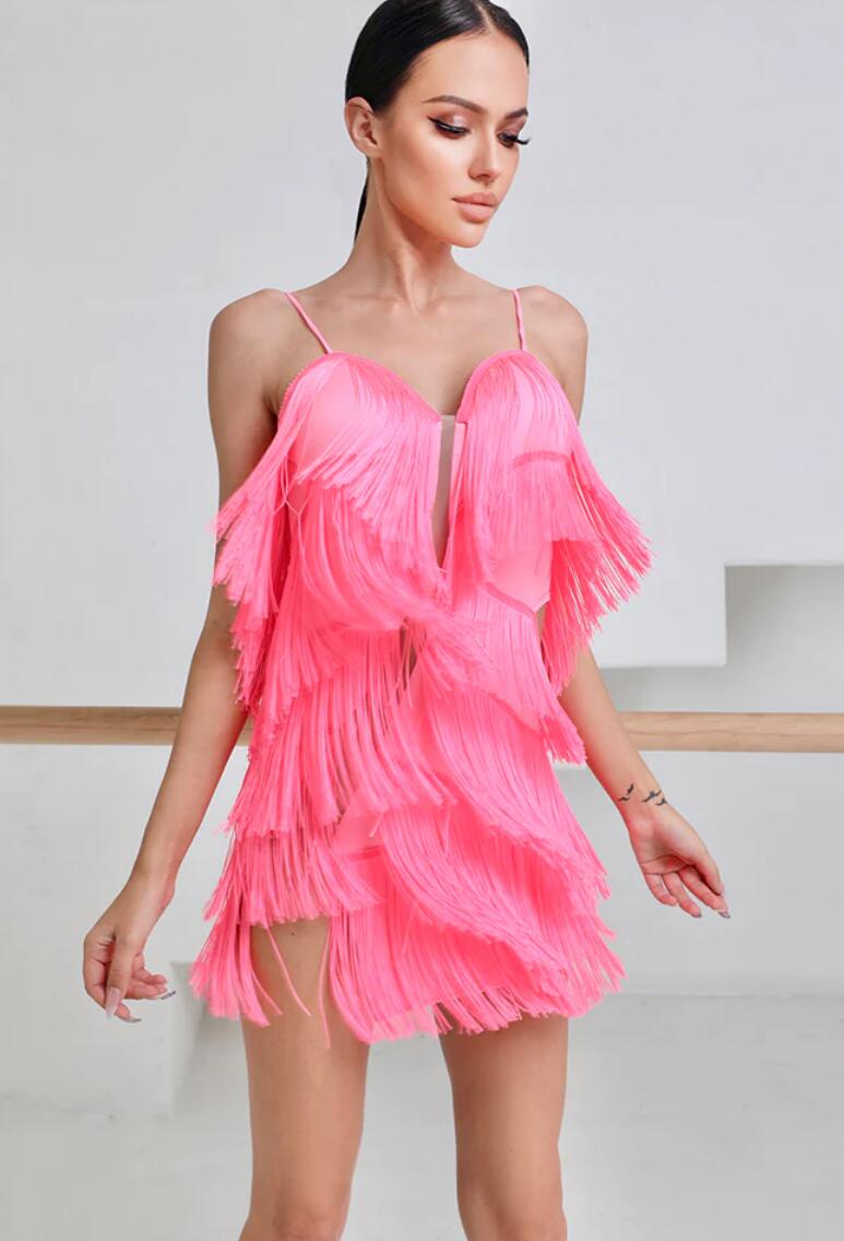 Women Tassel Salsa Latin Dance Dress Latin Dancewear Training Performance Costume