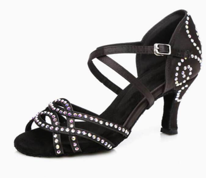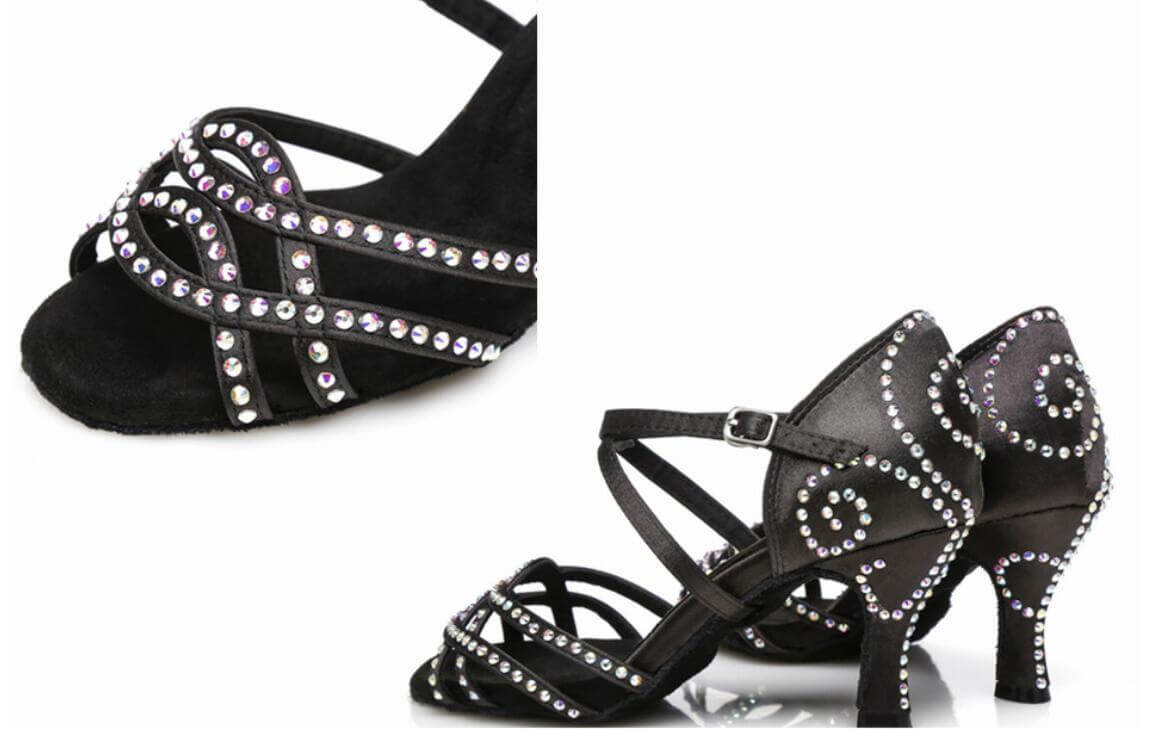 Black Rhinestone Ballroom Latin Salsa Bachata Dance Shoes