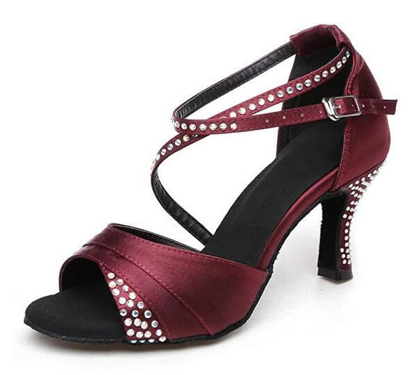 Burgundy Satin Diamante Ballroom Dance Shoes Latin Salsa Dancing Shoes