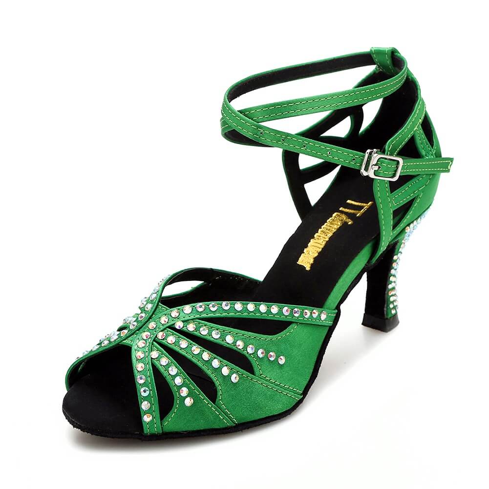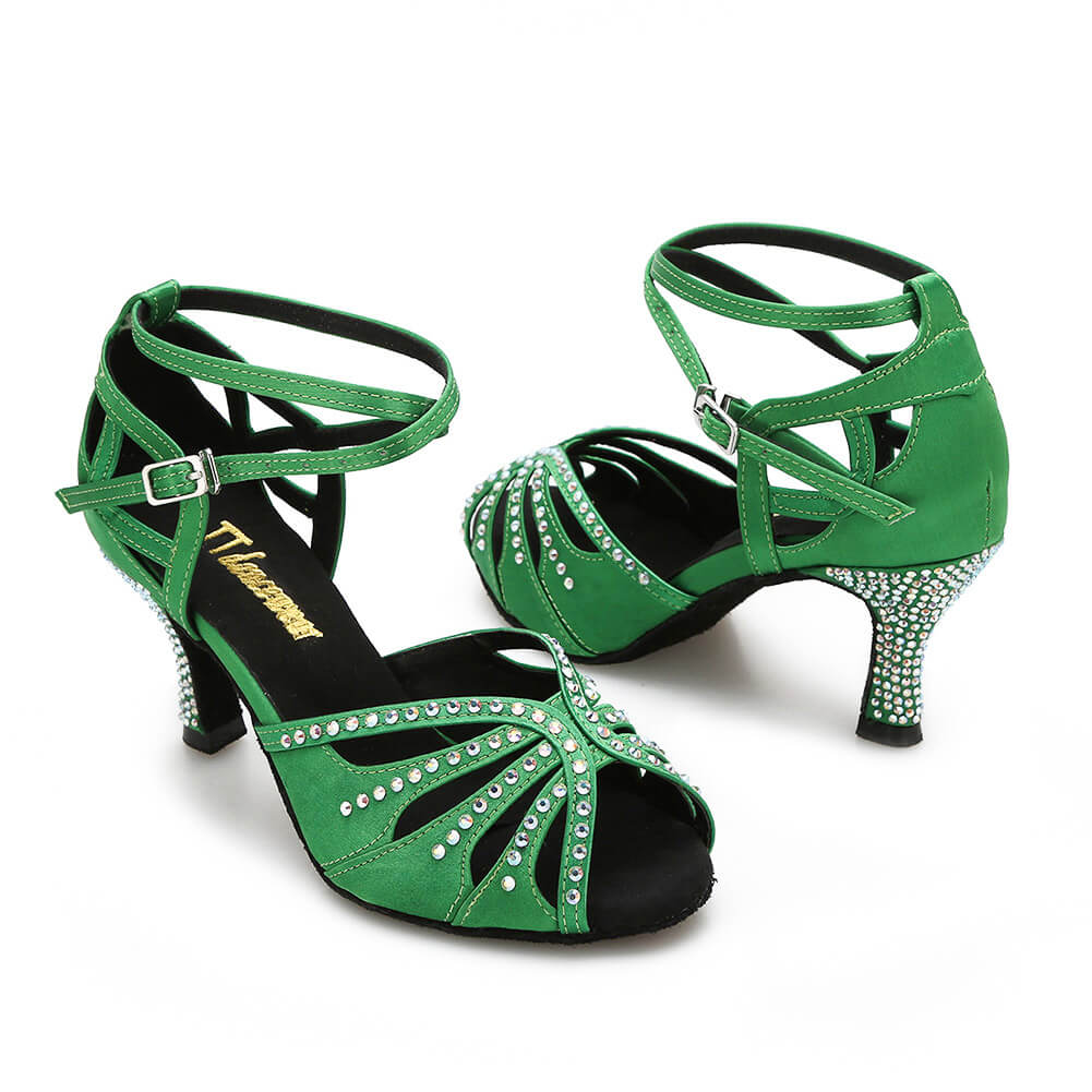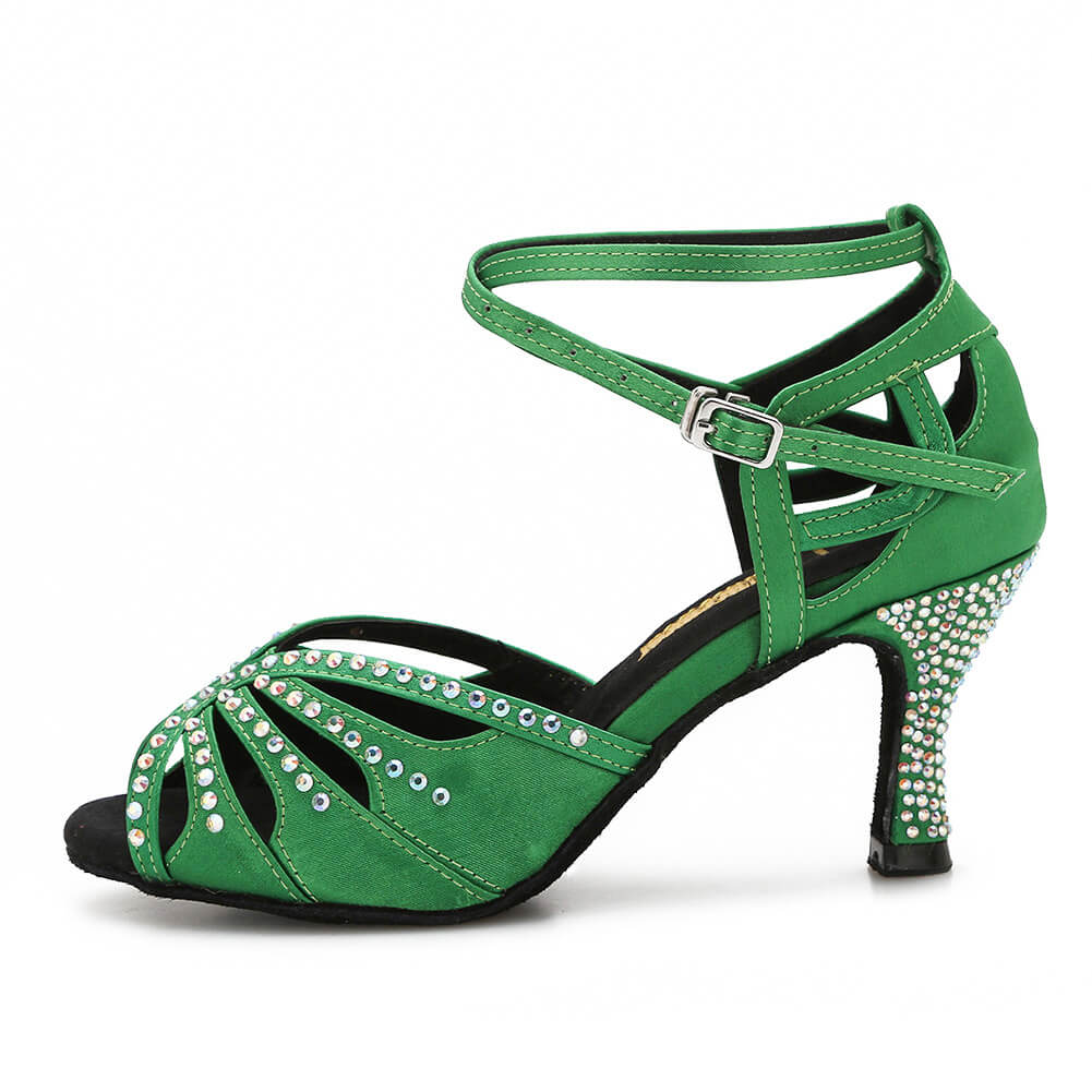 Green Satin Diamante Ballroom Dance Shoes Latin Salsa Dancing Shoes