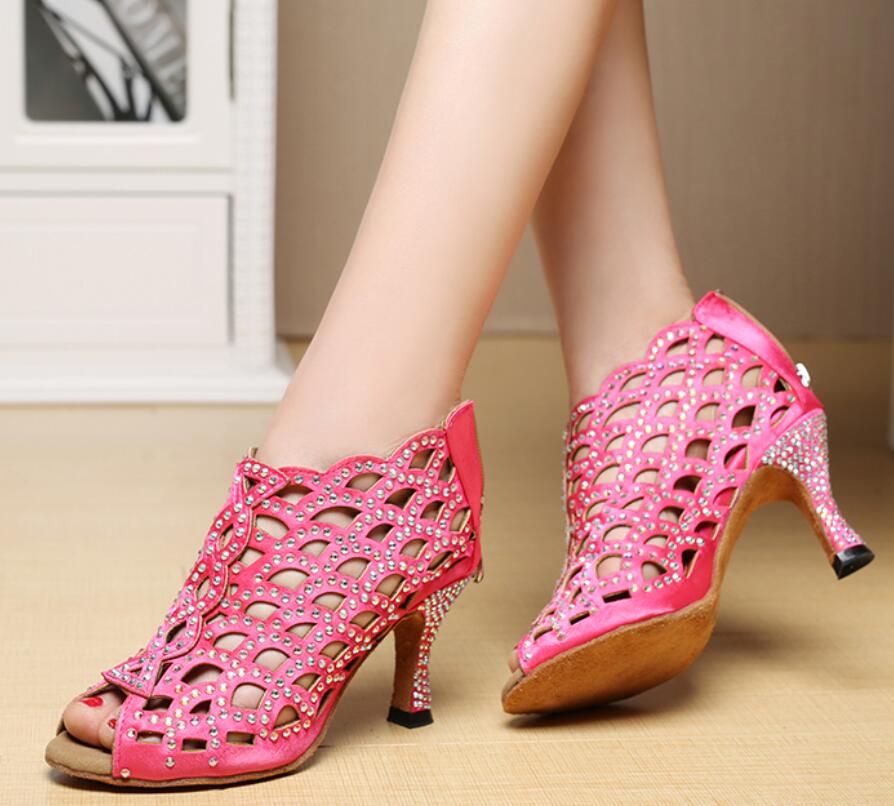Pink Rhinestone Ballroom Dance Shoes Latin Salsa Dance Boots
