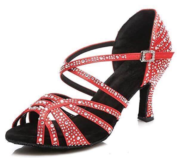 Red Rhinestone Ballroom Dancing Shoes Latin Salsa Dance Shoes
