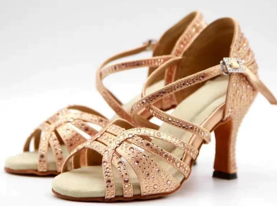 Salsa Dance Shoes Rhinestone Nude Color For Women
