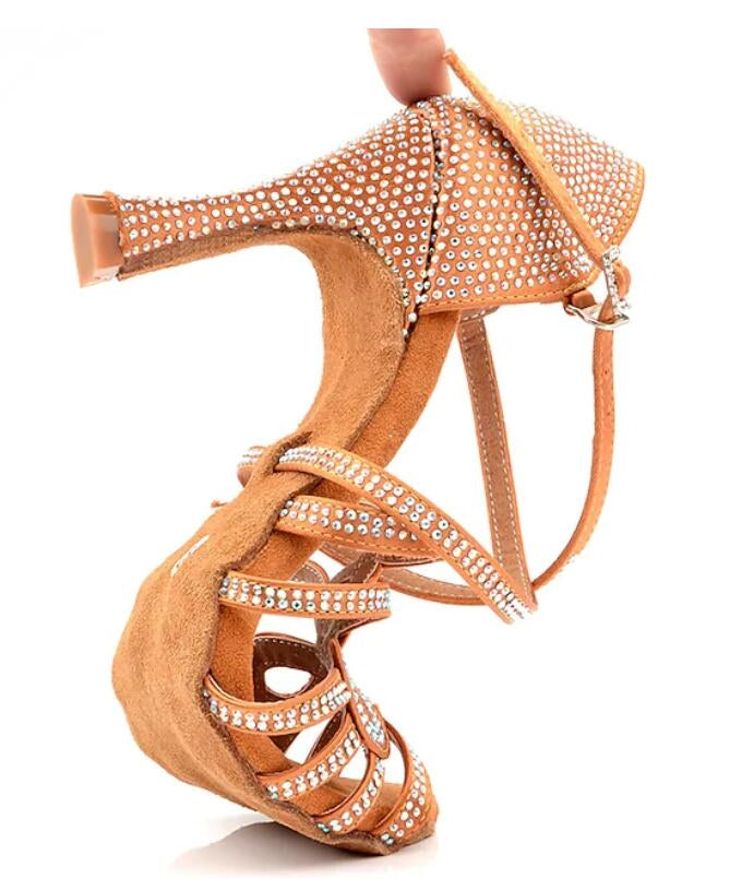 Tan Rhinestone Ballroom Dance Shoes Latin Salsa Performance Dancing Heels