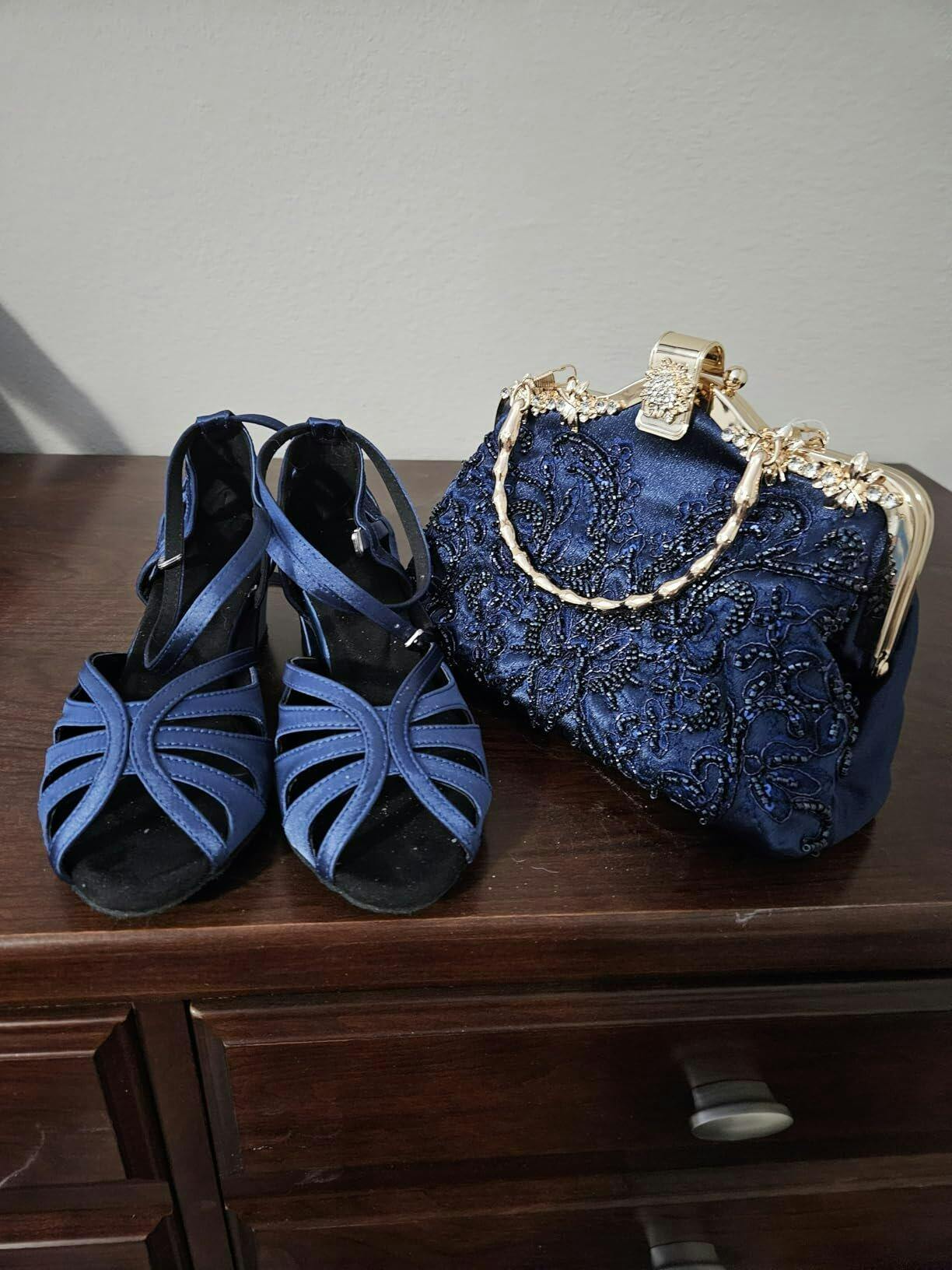 Navy Blue Ballroom Latin Dance Shoes Swing Low Heels