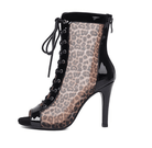Patent Leather+Leopard Mesh Open Toe Dance Bootie