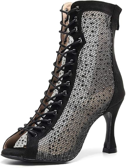 Black Dance Boots Rhinestone High Heels Dance Shoes