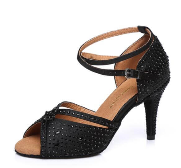 Black Satin Ballroom Rhinestone Dance Shoes Latin Salsa Dance Shoes
