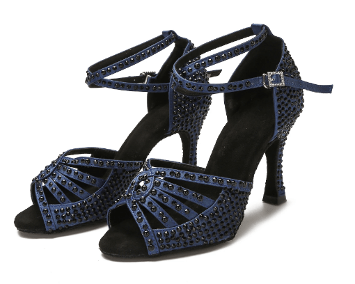 Salsa Shoes Womens Navy Blue Rhinestone Bachata Dance Shoes