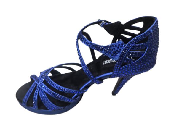 Blue Satin Rhinestone Samba Salsa Platform Dance Shoes