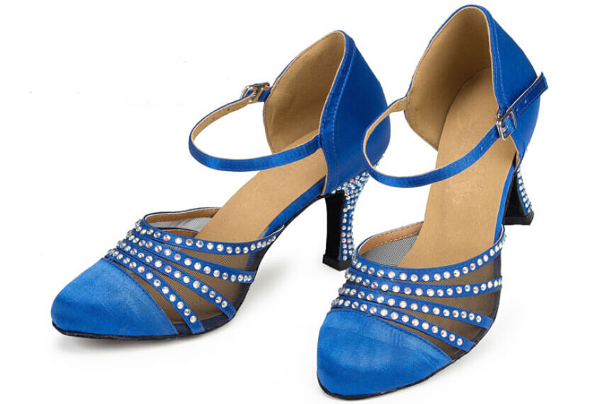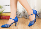 Blue Rhinestone Ballroom Closed Toe Dance Shoes Latin Salsa Dance Shoes