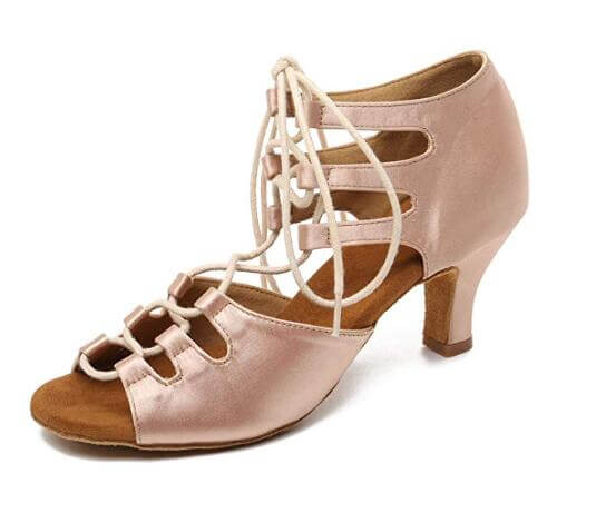 Flesh Satin Lace Up Latin Salsa Bachata Dance Heels