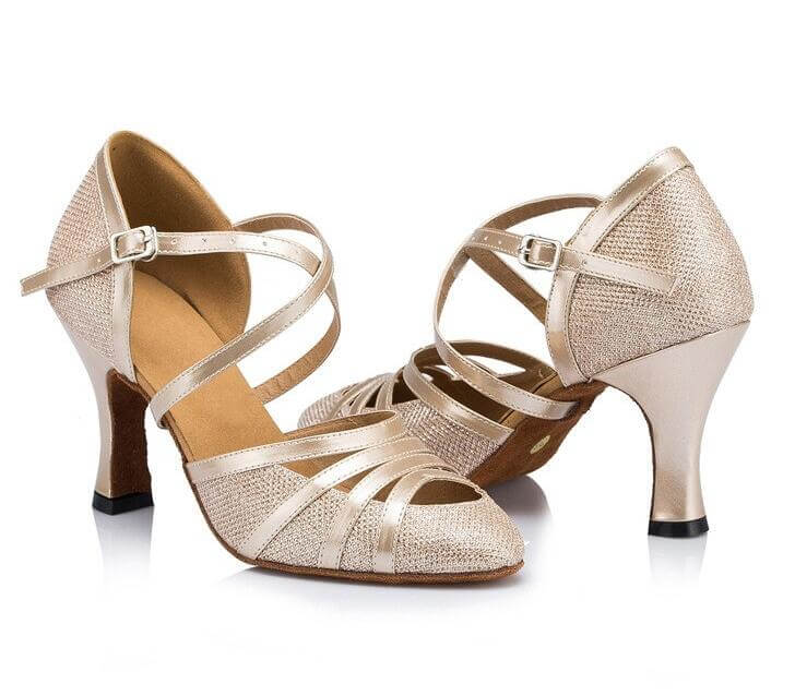Nude Glitter Closed Toe Ballroom Dance Shoes Latin Salsa Dance Shoes