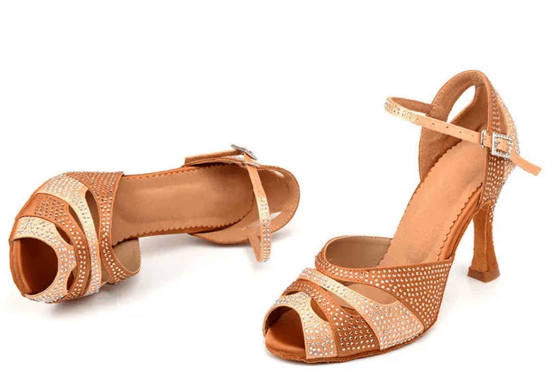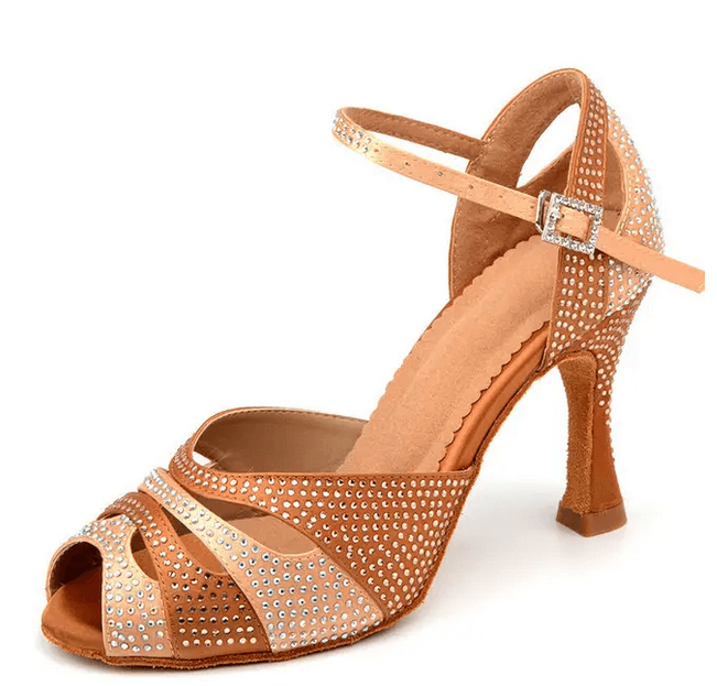 Ballroom Dance Shoes for Women Suntan Rhinestone Latin Shoes