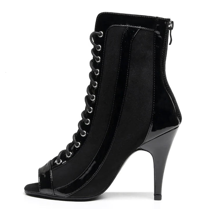 - Front lace-up closure and back zipper provide a snug, adjustable fit