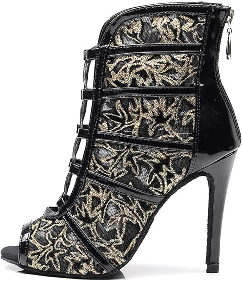 Leather+Mesh Open Toe Dance Bootie