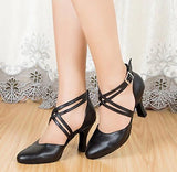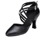 Black Leather Ballroom Dancing Shoes Latin Salsa Closed Toe Dance Shoes
