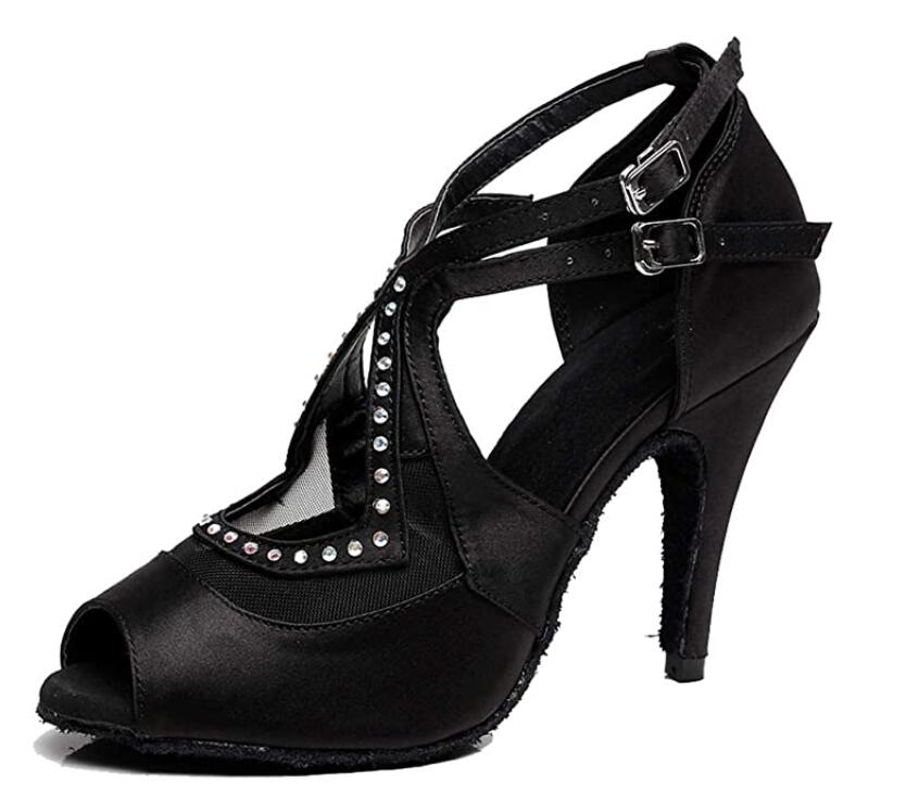 Black Rhinestone Ballroom Dance Shoes Kizomba Latin Salsa Dance Shoes