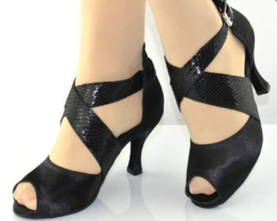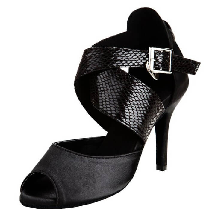 Black Satin Ballroom Dancing Shoes Latin Salsa Dance Heels