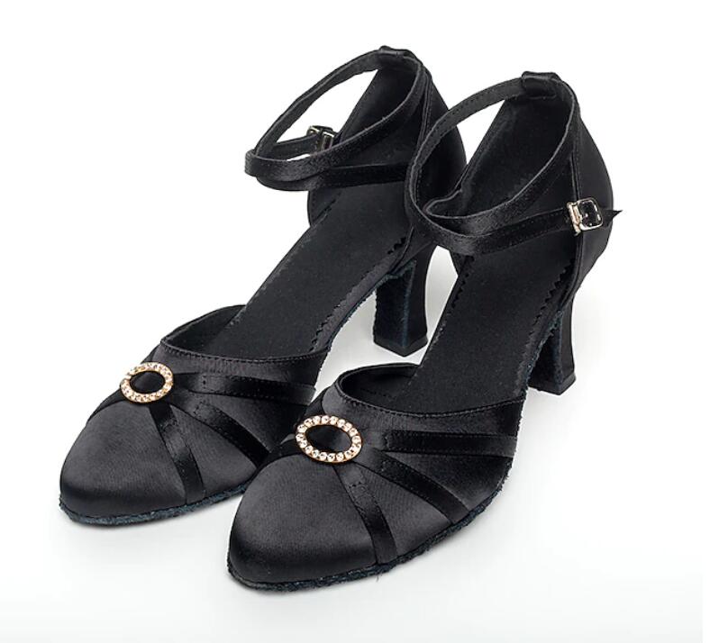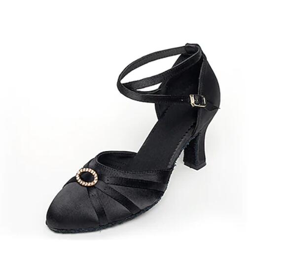 Black Satin Closed Toe Ballroom Dance Shoes Latin Salsa Dancing Shoes