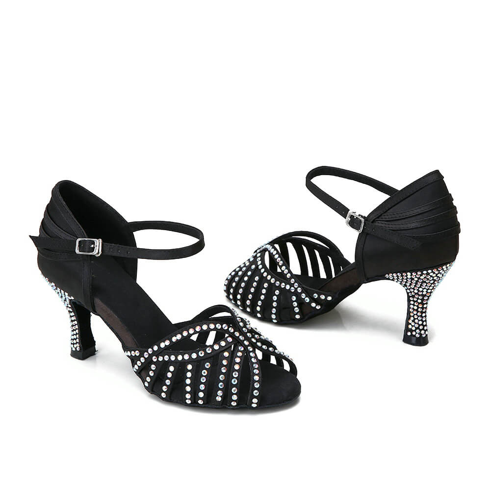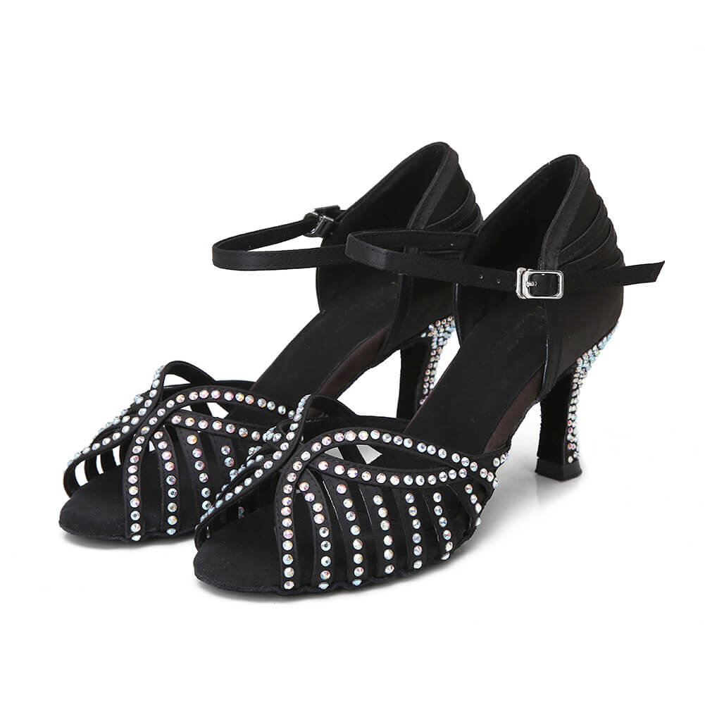 Black Satin Crystal Ballroom Dance Shoes Latin Salsa Dancing Shoes