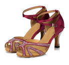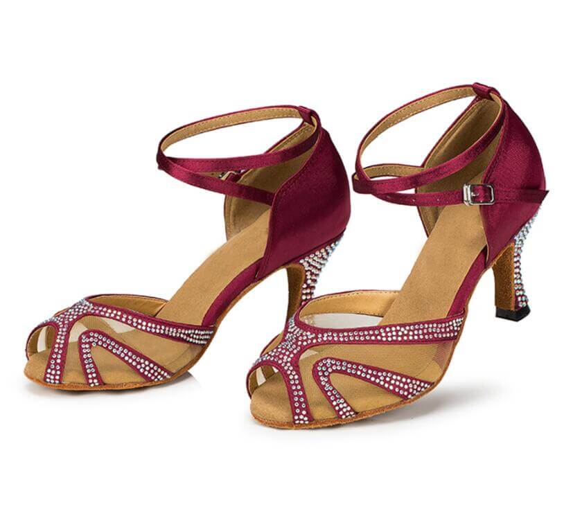Burgundy Satin Diamante Ballroom Dance Shoes Latin Salsa Dance Shoes