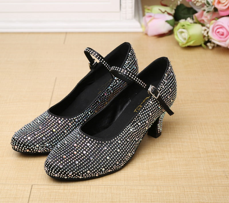 Closed Toe Ballroom Dance Shoes Rhinestone Black