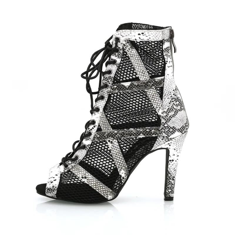 Snakeskin Print+Mesh Open Toe Dance Bootie