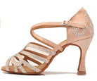 Flesh Satin Rhinestone Ballroom Latin Salsa Performance Dance Shoes