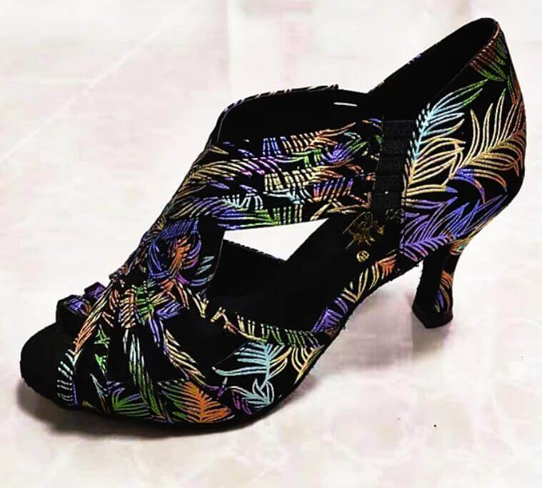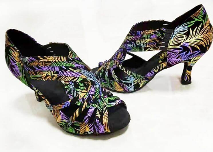 Flower Print Ballroom Dance Shoes Latin Salsa Dancing Heels