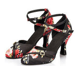 Flower Satin Ballroom Closed Toe Dance Shoes