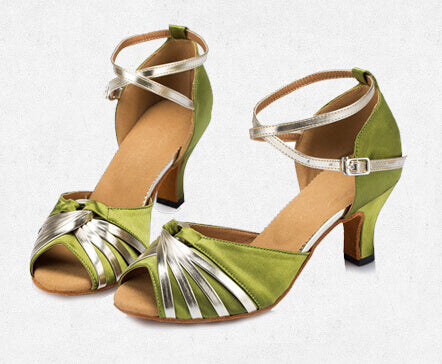 Green Satin Ballroom Dance Sandals Latin Salsa Dance Heels