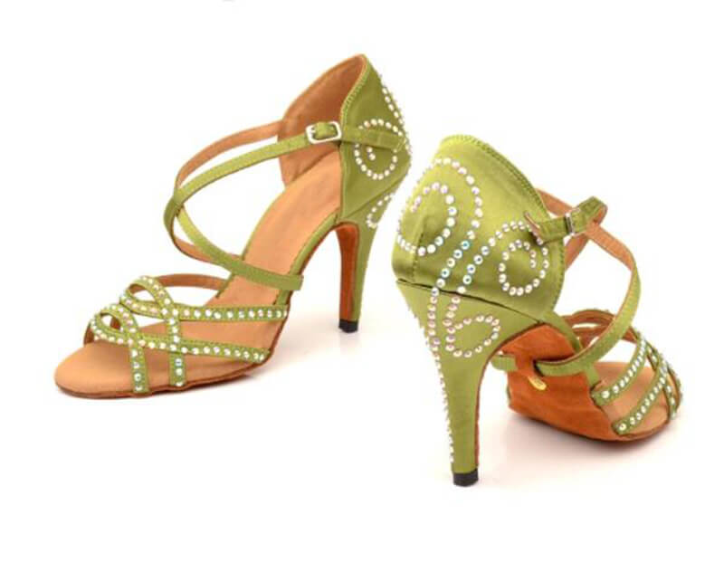 Green Satin Rhinestone Ballroom Dance Shoes Latin Salsa Dance Shoes