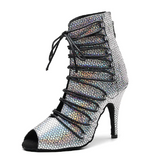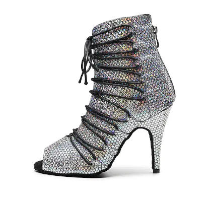 Grey Glitter Ballroom Latin Dance Salsa Dance Boots