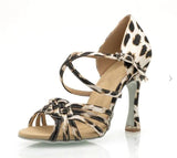 Leopard Satin Ballroom Latin Salsa Bachata Dance Heels