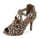 Leopard Satin Ballroom Latin Salsa Bachata Dance Shoes