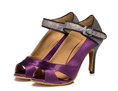 Purple Satin Ballroom Shoes Latin Salsa Dance Heels
