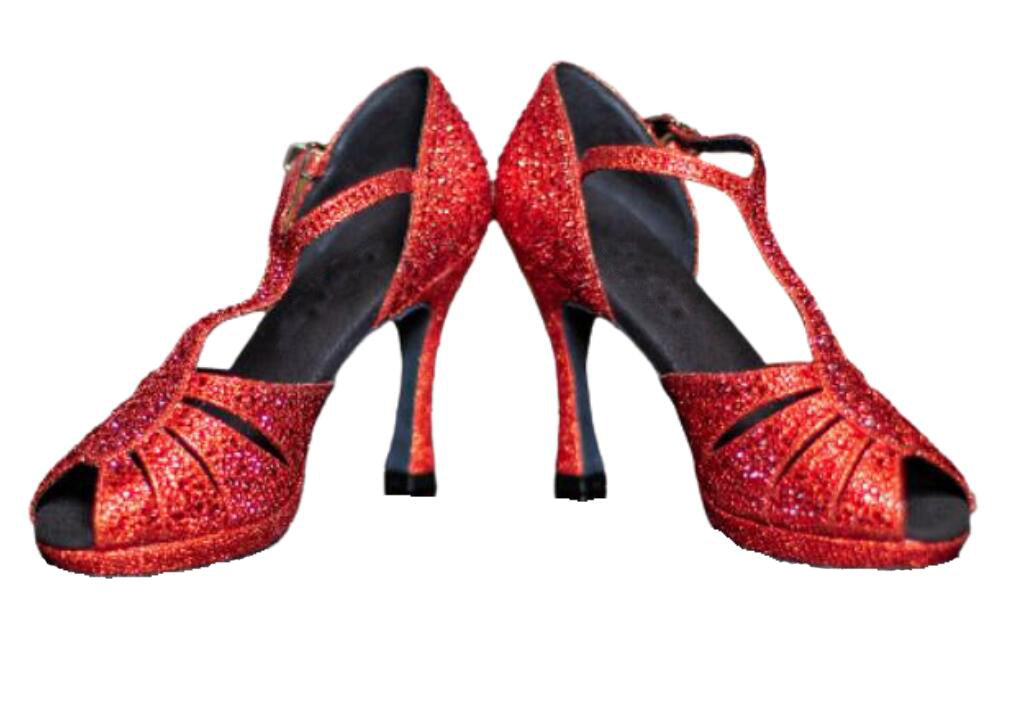 Red Glitter Rhinestones Samba Platform Dancing Shoes High Heels