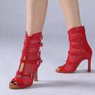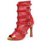 Red Leather Jazz Boots Dance Ankle Boots for Heels Class