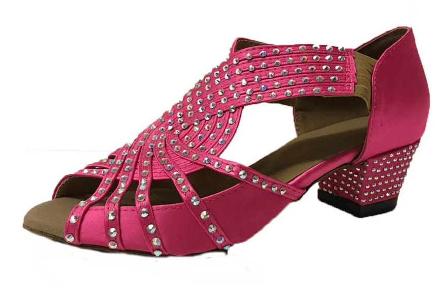 Salsa Dance Shoes for Ladies Hot Pink Rhinestone