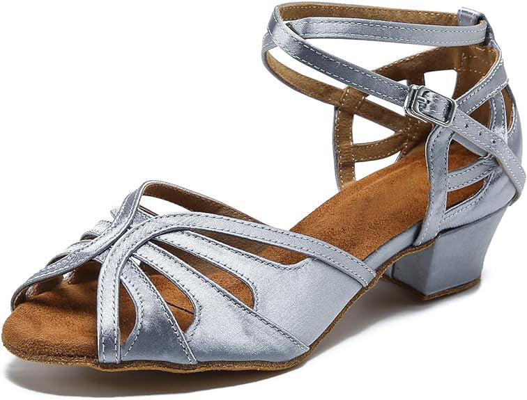 Silver Satin Ballroom Latin Dance Shoes Swing Dance Cuban Low Heels