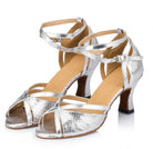 Silver Snakeskin Print Ballroom Latin Salsa Bachata Dance Shoes